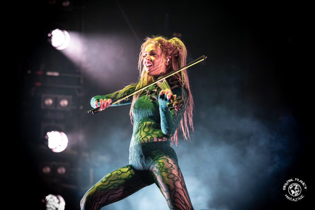 Then Lindsey Stirling came out and opened with “The Phoenix.” I’ve seen her before – over a decade ago, actually – and I was blown away by how much she’s grown as a performer and musician. Back then, she was fun to watch, but now she commands the stage with confidence. She played many new songs: “Monday Not Sick Anymore,” “Untamed,” and “Evil Twin;” many old songs: “Elements,” “Crystalize,” and “Roundtable Rival;” and several covers, such as “Sandstorm,” Toxic,” and “The Devil Went Down to Georgia.”