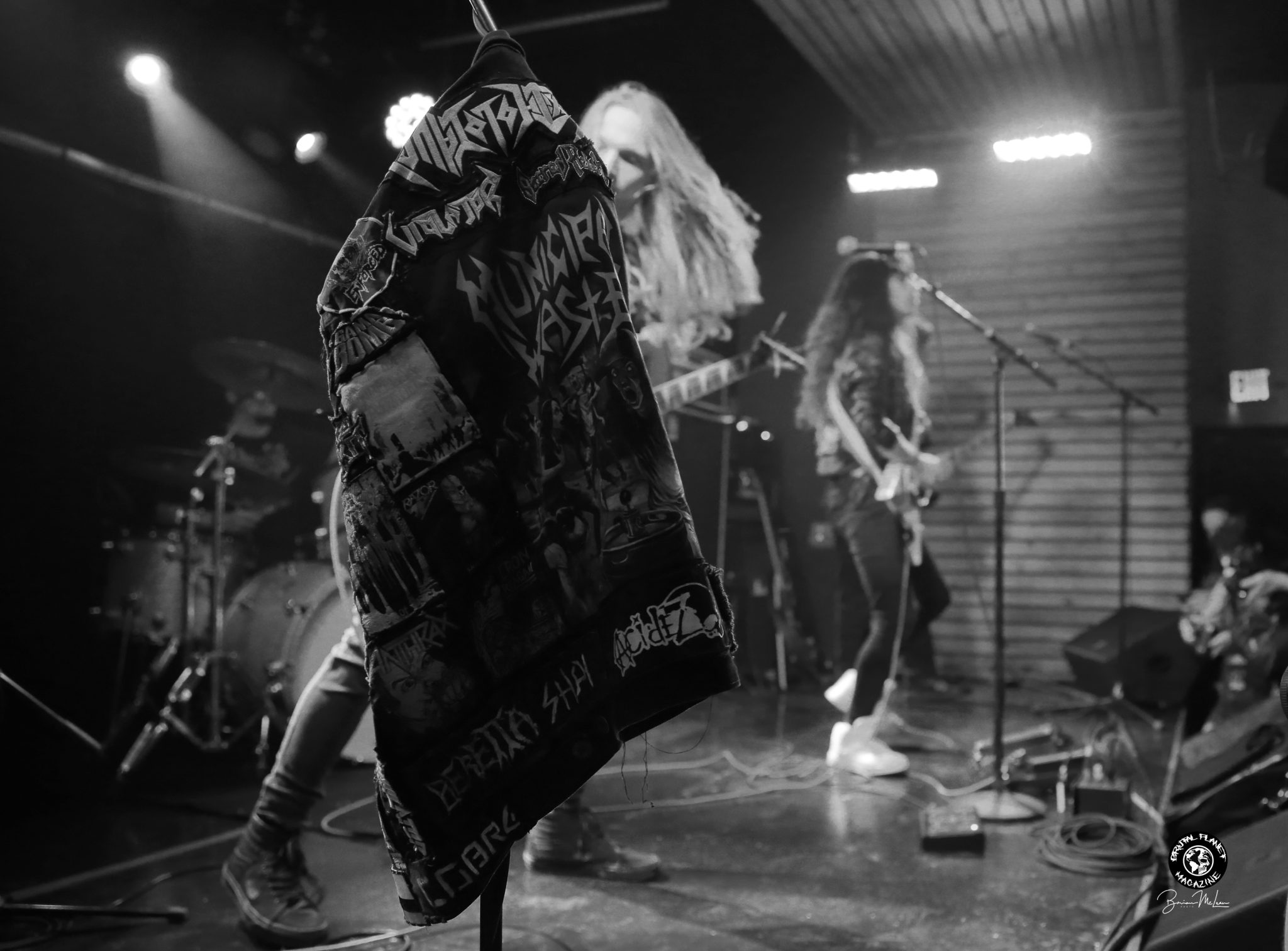 1 LabyrinthJacket Angel Yong’s denim battle jacket hanging on the stage right microphone stand during Labryinth’s set. Photo by Brian McLean