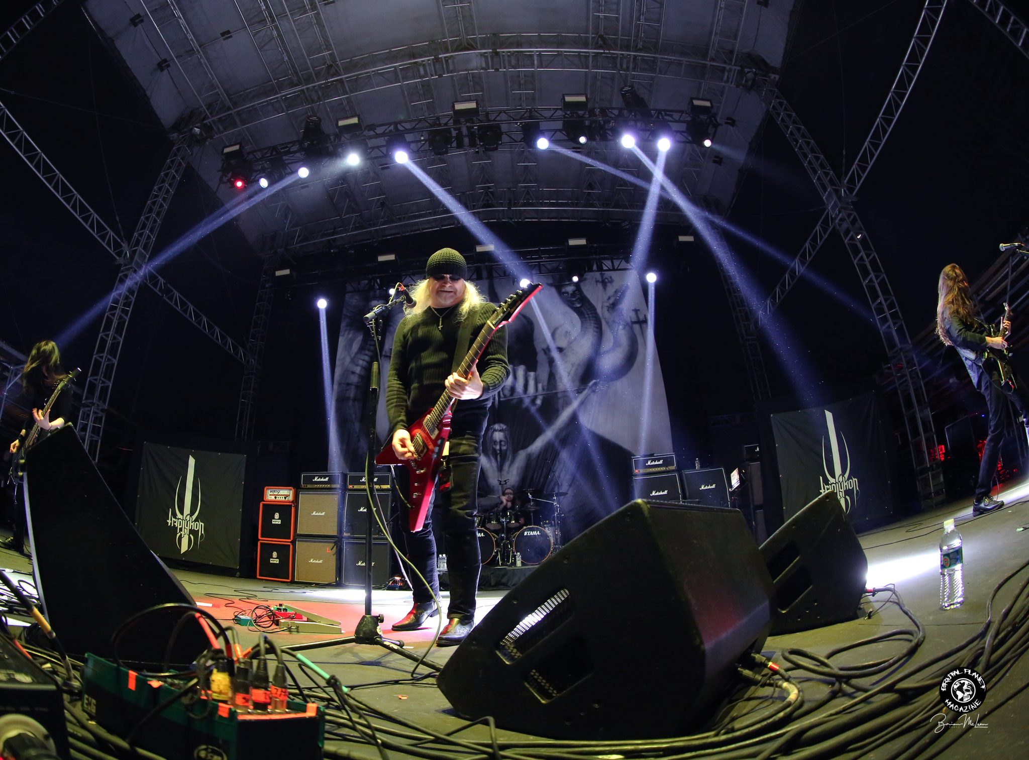 The To Mega Theron album cover served as the backdrop for Triptykon’s exclusive Celtic Frost song list. Photo by Brian McLean