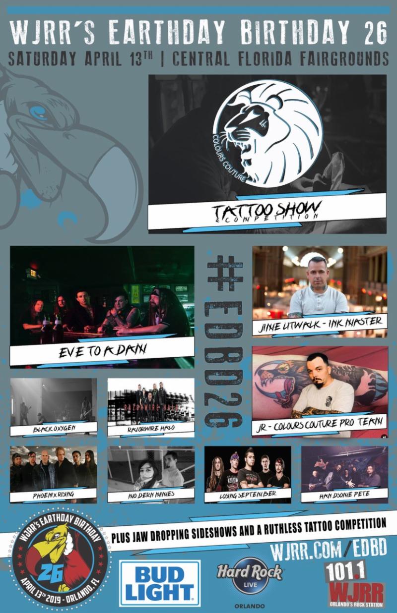 Returning once again to WJRR‘s massive Earthday Birthday 26 in Orlando, FL – taking place at the Central Florida Fairgrounds on Saturday, April 13 – Colours Couture Traveling Tattoo Show & Competition is adding fuel to the fire with a full lineup of bands scheduled to perform on the official Colours Couture stage!