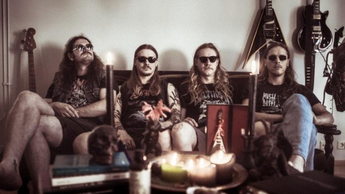 | ‘Hidden Beyond Time’ is the debut album by Finnish heavy metal group Green King. Inspired by many subgenres of heavy music, ‘Hidden Beyond Time’ moves from hard hitting cuts fueled by chugging, galloping riffs that brings to mind the great metal era of the 70/80s. Relentless, stoner metal infused adrenaline shots move to more mellow, experimental tracks featuring folk inspired melodies. With traditional heavy metal at its heart and core, ‘Hidden Beyond Time’ sits on a foundation made of melodic dual guitar arrangements, gritty vocals and occult, mystical lyrics. This is a 34-minute-long heavy metal experience that showcases the dynamic nature of this Finnish four piece. The album was recorded at Beach House rehearsal studio and at Dullas sauna cabin during the year 2020. Mixed by Sakke Vänttinen at Rock Alley Studio. ‘Hidden Beyond Time’ will be released on The Sign Records December 16th. The album will be released on vinyl, CD, and all streaming platforms. |