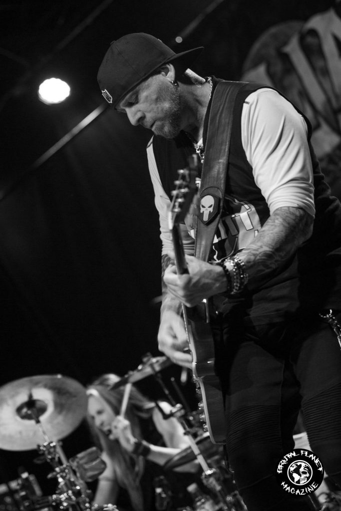 Bullitt guitarist Scott Morrison with April Samuels in the background. Samuels filled in on the drums for the night.