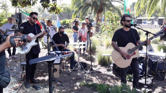 | In support and solidarity with people of Iran following the ongoing unrest within the country, Iranian-American rock/metal band TarantisT had a free public unplugged set in front of the Los Angeles Federal Building on Wilshire Boulevard on Sunday June 19, 2022. All major Farsi medias were covering this event and TarantisT’s activities. Reza Pahlavi, who prior to the 1979 Iranian Revolution was the Crown Prince of Iran, posted about TarantisT’s event on his twitter, Instagram and other social media pages, encouraging people to get together and support the cause. The current trending hashtags are #4iran #artists4iran, “my instrument, my weapon” and #برای_ایران in Farsi which means “for Iran”. TarantisT is planning on putting events in different cities of North America and Europe to raise awareness and support the cause. Read more about TarantisT at Rolling Stone here: https://www.rollingstone.com/music/music-news/iran-musician-compilation-homanity-1146276/ About TarantisT: Formed in 2000 by a group of young underground metal heads, TarantisT originated in the basement alternative rock and heavy metal scenes in their native Tehran, Iran. Having to perform secretly but loudly often proved to be difficult, but after sparking a following via word of mouth in the underground, the band soon began to garner international recognition. Within just a few years, international media correspondents inspired by their story (including BBC, SKY, CNN, NPR, Metal Hammer and Kerrang) started visiting Tehran to meet and talk with TarantisT. These news reports and articles aided TarantisT in cultivating a worldwide following – motivating the band to relocate to the United States Los Angeles in 2008. The band was invited to play several festivals like SXSW, CMJ, Canadian Music Week and Intergalactic Fest. TarantisT quickly added to their touring repertoire, performing on the same stages as Metallica, Motörhead, Stone Temple Pilots, Muse, Cheap Trick, Voivod, Sum 41, My Ruin, Ben Harper and many more TarantisT on social media: @tarantist instagram & twitter Spotify: https://open.spotify.com/artist/0e1CRZ2g8OBk2PIr5XvjXe?si=CFegiVaLRpGjPLUVr15LBg Apple Music: https://music.apple.com/us/artist/tarantist/289351697 |